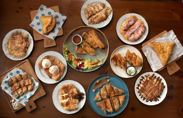 Τι σημαίνει «μοναδικές» και «ιδιαίτερες» γεύσεις; Μπουγάτσα με κρέμα ή vegan με κρέμα αμυγδάλου και ινδική καρύδα, μπουγάτσα με κρέμα σοκολάτας ή με μήλο κομποτέ κραμπλ και αλατισμένη καραμέλα, μπουγάτσα με μυζήθρα και θυμαρίσιο μέλι κανέλα και καρύδια, μπουγάτσα με κατσικίσιο τυρί και κολοκύθι, κιχί με κιμά, μπουγάτσα μουσακά vegan με μελιτζάνες, καρότο μανιτάρια και γιαούρτι καρύδας, χορταρένια με ξινομυζήθρα.